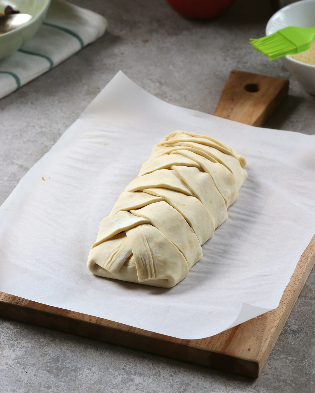 apel. Tutup bagian tengah yang berisi apel dengan menutup secara bergantian bagian sisi