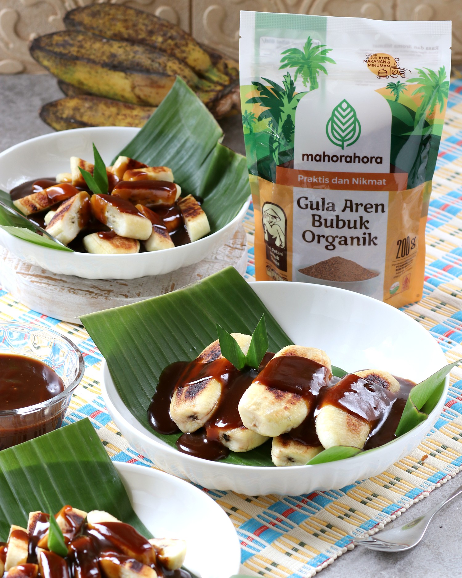 Bahan : 1 sisir Pisang kepok2 sdm margarin400 ml santan150 gr gula aren bubuk Mahorahora2 lembar daun pandan, simpulkan½ sdt garam4 sdt tepung maizena, larutkan dengan 2 sdm airDaun pisang Cara Membuat :
