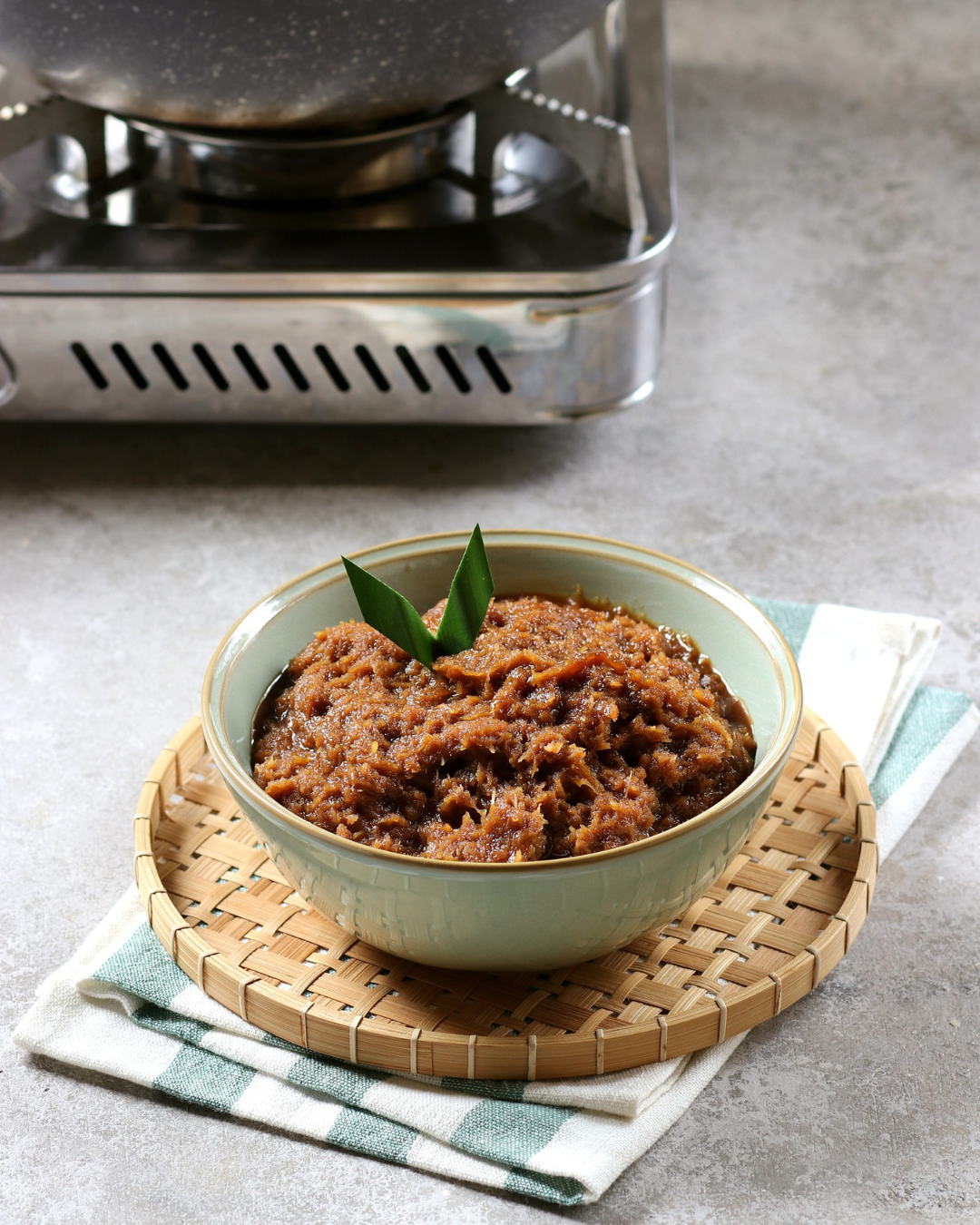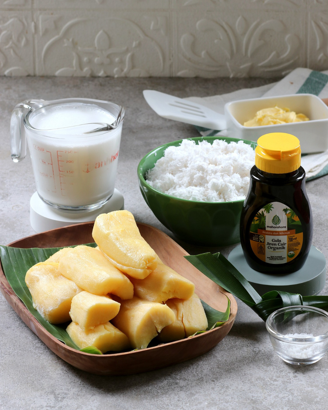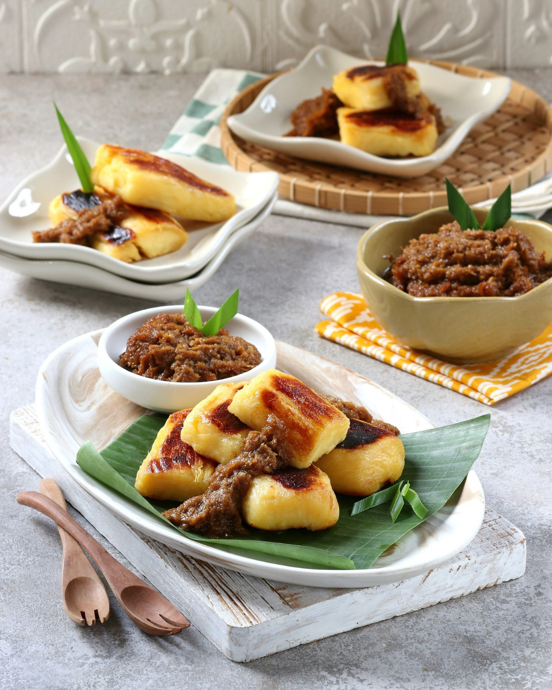 Sajikan dengan tape dan saus kelapa gula aren hangat