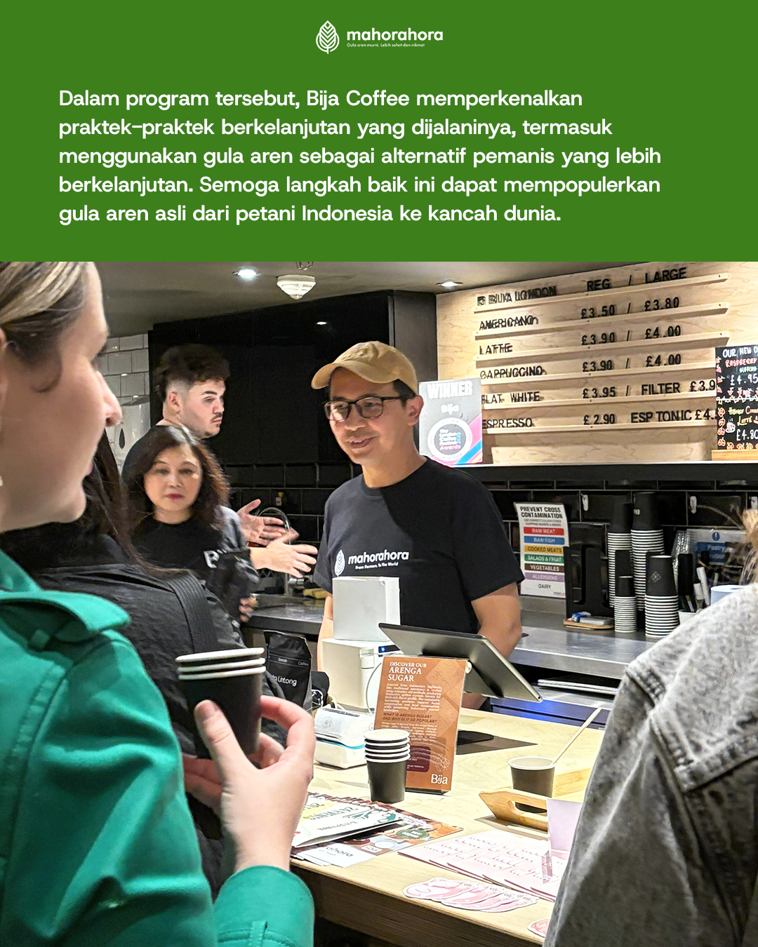 Tak lupa, terima kasih kepada keluarga Indonesia yang setiap hari telah memilih Mahorahora. Semoga ke depannya semakin banyak pintu yang terbuka, sehingga gula aren Indonesia kian dikenal secara internasional, memberi manfaat lebih luas, dan menghadirkan kesejahteraan bagi para petani kita.