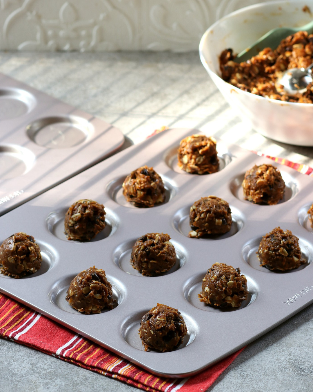 5. Sendokkan adonan ke atas loyang yang telah disiapkan. Gunakan sendok es krim ukuran