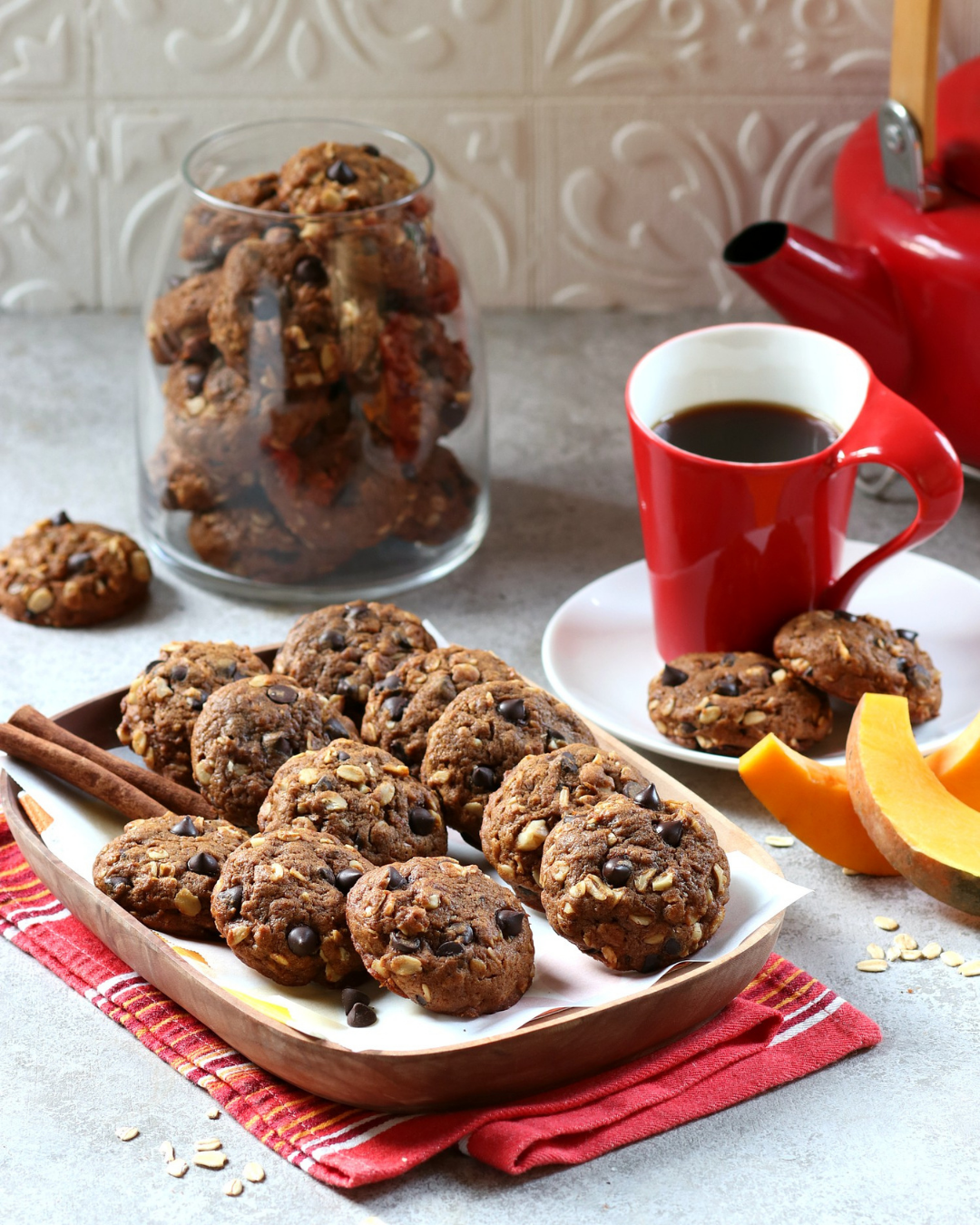 Kali ini ada kreasi manis yang unik: Pumpkin Oatmeal Chocolate Chips Cookies 🎃🍫.