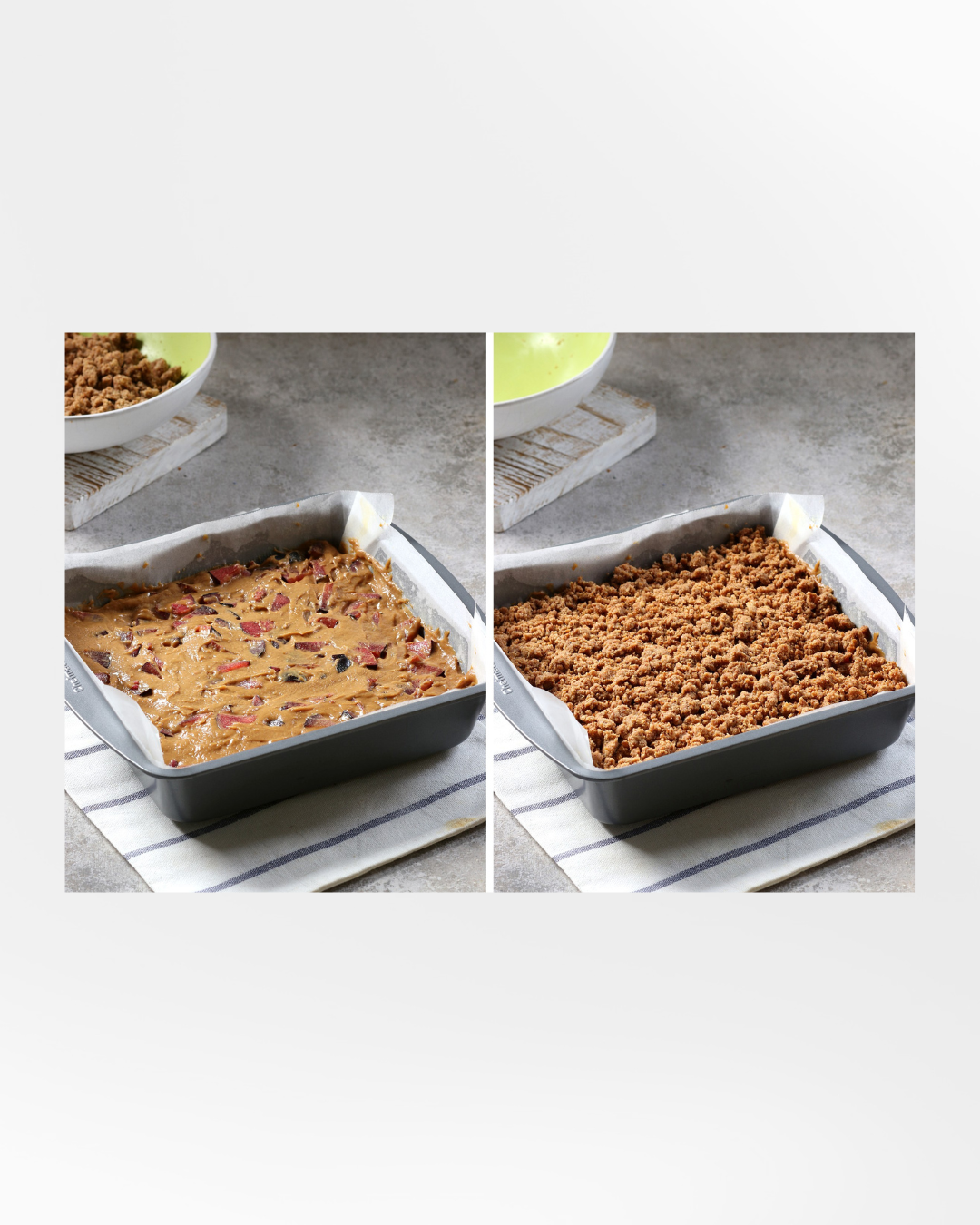 1. Siapkan loyang diameter 20 x 20 cm. Alasi dengan kertas roti pada bagian dasar dan